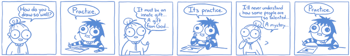 point is that learning any skill requires endless pitiless hard work